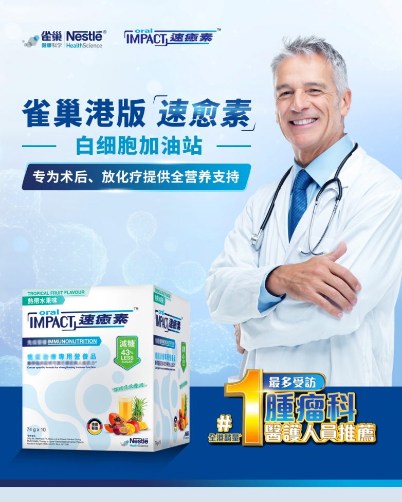推荐:术后早期(禁食/管饲)必须使用速愈素;恢复期有感染风险者继续使用。国际三大营养学会——美国重症医学会(SCCM)、美国肠外肠内营养学会(ASPEN)与欧洲临床营养与代谢学会(ESPEN)基于上述高等级证据,对接受大手术的肿瘤患者使用富含精氨酸、核苷酸和Omega-3鱼油的免疫营养配方给予A级推荐。速愈素是目前唯一同时含这三种营养素且拥有上述高质量临床证据的肿瘤专用配方。